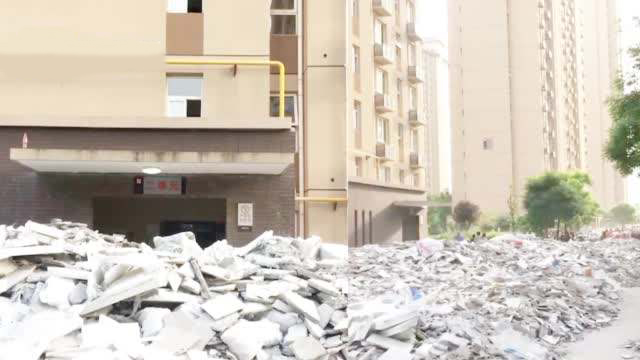 5月15日,陕西西安。一回迁房小区,4月份业主接房后,因为瓷砖空鼓、漏水等质量问题,整个小区的业主都在动工重修,产生了大量建筑垃圾,一个星期了都没人处理,导致堵满了路。拍客致电物业,对方回应称不清楚此事。